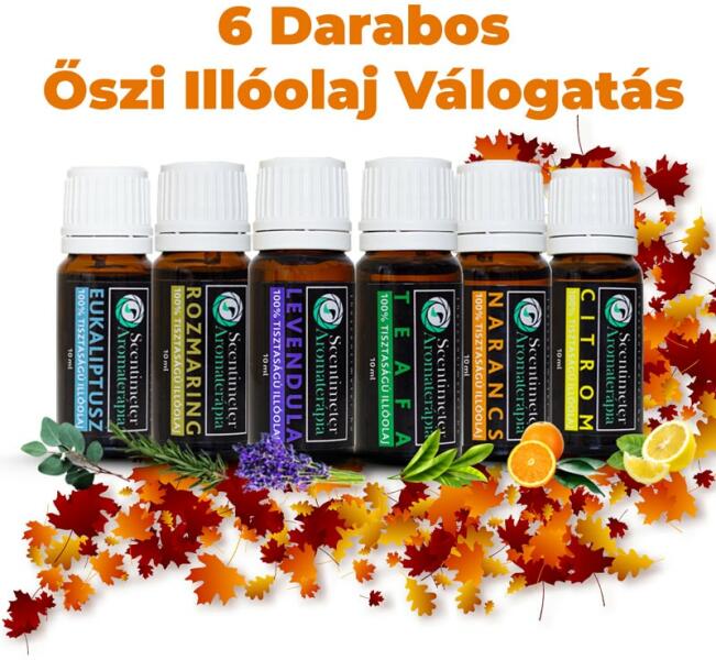 A 6 Darabos Aromaterápiás Őszi Illóolaj Csomagban megtalálható illóolajok: - 1db Eukaliptusz Illóolaj - 1db Rozmaring Illóolaj - 1db Levendula Illóolaj - 1db Teafa Illóolaj - 1db Narancs Illóolaj - 1db Citrom Illóolaj