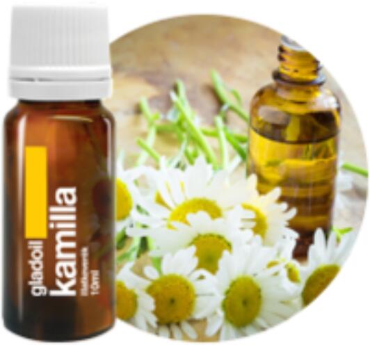 A nyári rét jellegzetes növényének vidám és fűszeres illata. Az illóolaj és az illóolajban gazdag szeszes-vizes kivonatok főbb hatásai: antimikrobiális, gyulladáscsökkentő, sebgyógyulást elősegítő, fekélyellenes, görcsoldó, emésztőrendszeri tonizáló és nyugtató. A kamilla illóolaj és az illóolajban gazdag szeszes-vizes kivonatok alkalmazásának legfontosabb terü