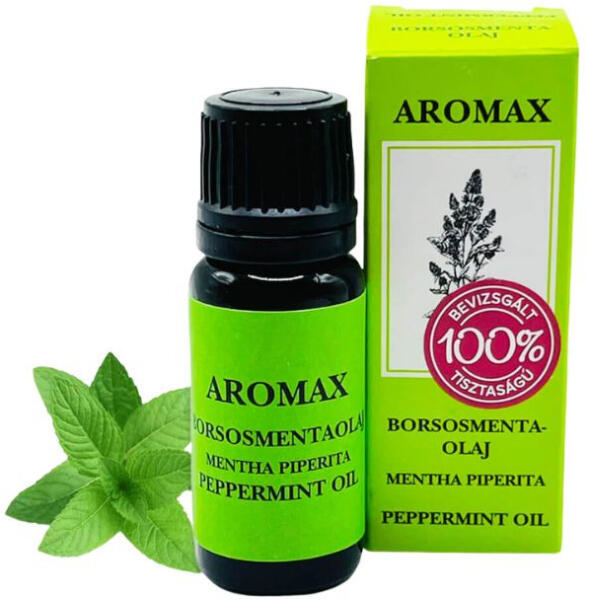 Aromax borsosmenta illóolaj 10 ml Borsosmentaolaj Mentha piperita 100% tisztaságú, bevizsgált, esszenciális illóolaj. Mentolos illatú illóolaj aromaterápiára. Hatását népgyógyászati adatok igazolják. Mire jó? A borsosmenta virágzó hajtásaiból nyert illóolaj antimikrobiális, fertőtlenítő, frissítő hatással rendelkezik. Enyhítheti a fejfájást, alkalmazható helyi érz