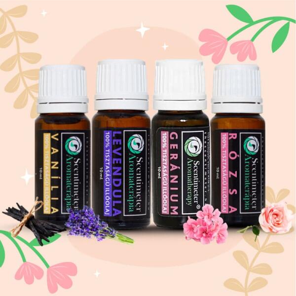 A 4 Darabos Aromaterápiás Tavaszi Illóolaj Csomagban megtalálható illóolajok: - 1db Levendula Illóolaj - 1db Geránium Illóolaj - 1db Rózsa Illóolaj - 1db Vanília Illóolaj