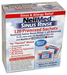 NaCl és szódabikarbóna tartalmú , izotóniás, normál PH értékű sóoldat előállítására szolgáló 120 tasakos utántöltő csomag a SinuRinse orr irrigátorokhoz (240 ml-es palackhoz). Tartósítószert és jódot nem tartalmaz.