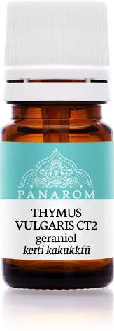 A kakukkfű illóolajának e kémiai típusa kiváló szív- és bőrtonizáló illóolaj. Geraniol tartalmánál fogva kiváló gombaölő hatású, a geránium és pálmarózsa illóolajaihoz hasonló terápiás hatásai vannak. Méhösszehúzó, méherősítő hatása miatt a szülési folyamatot támogatja, ugyanezen okból várandós kismamák kerüljék a használatát. Vannak olyan növény