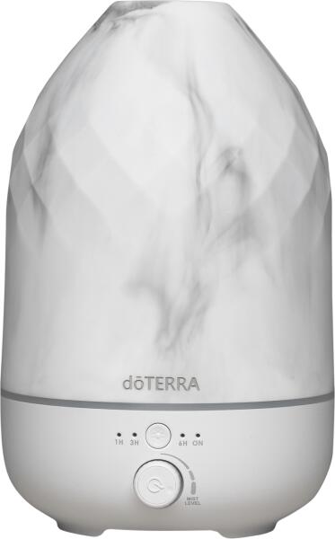 dōTERRA Volo párologtató A gyönyörű dōTERRA Volo ultrahangos párologtató ónix- és márványbevonattal kapható – az otthon vagy az iroda bármely helyiségében tökéletesen mutat. A Volónak kézzel, műgyantából készült kőteteje van egyedi gyémántmintával, és választható fénybeállításai vannak: fény nélküli működés, meleg és élénksárga fény. Ez az egyedi p