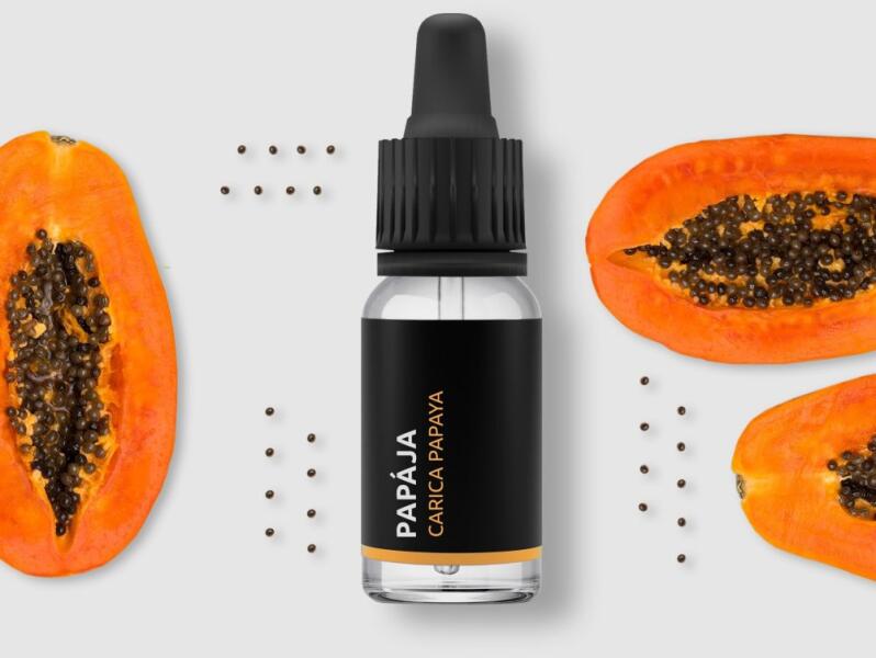 Papaya olaj (Carica papaya) 10ml A papayát trópusi régiókban termesztik, édes, gyümölcsös és egzotikus ízéről ismert. A papaya a szuperélelmiszerek közé tartozik. A papayaolaj gazdag tápanyagokban, A-, C-, E-vitaminban, kalciumban, vasban és karotinban. Az egyedülálló papin enzimet tartalmazza, amely kiválóan képes regenerálni a száraz vagy sérült bőrt és helyreállít