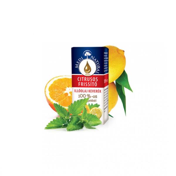 Citrusoss Frissítő természetes illóolaj keverék - citrusfélék és egy csipet menta egyedi és harmonikus keveréke A benne levő citrusféléknek köszönhetően a stresszoldásban segít, felvidít, tiszta, könnyed légkört teremt, felemelő illattal tölti be a teret és a természet erejével fertőtleníti a levegőt. Használhatod otthon és a munkahelyeden is, leginkább párologtat