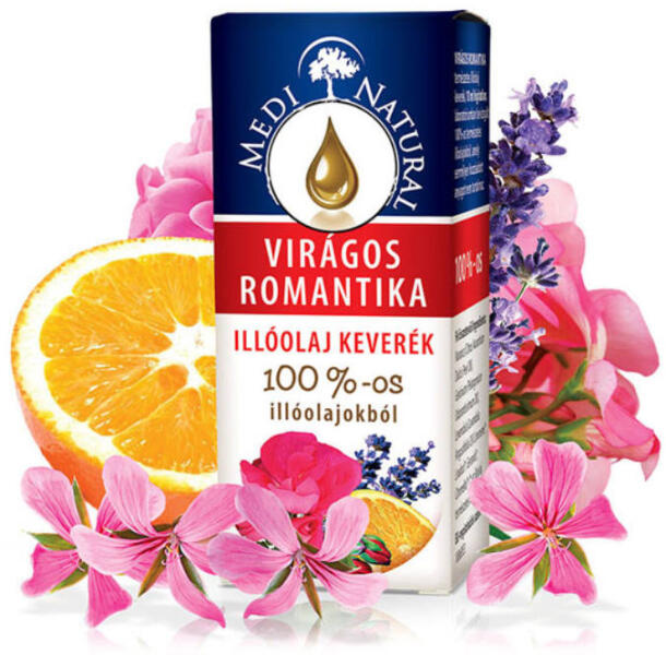 A virágos romantika illóolaj keverék - a friss virágokkal teli nyári mező illatára emlékeztet minket. Egyszerre édes és romantikus az illata, mely segít megnyugodni és harmóniát teremteni magunk körül. Összetevői: Narancs (Citrus Aurantium Dulcis Peel Oil), Geránium (Pelargonium odorantissimum oil Levendula (Lavandula angustifolia oil) Illatprofil: vidám, nyugtató, stresszold