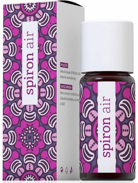 Illóolajok (tuja, fenyő, szantál, mirtusz, citromfű, menta, levendula, lemongrass, kámfor, tömjén, eukaliptusz). A készítmény elsősorban a tüdő, a szív, a vastagbél, a gyomor energetikai pályáit továbbá az övvezetéket és más meridiánokat harmonizáló illóolajok elegyét tartalmazza. A Spiron Air használata köhögés, fejfájás, depresszió, neuraszténia, idegkimerült