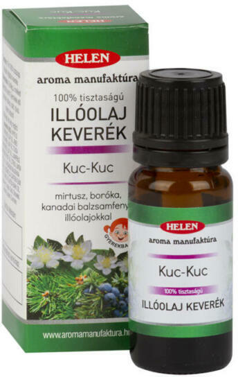 HELEN Kuc-Kuc illóolaj keverék gyerekeknek GYIK16 Hurutoldásra gyermekeknél Boróka, citrom, majoranna és tömján olajokkal Hatékony segítség kisgyermekeknél is 00 % tisztaságú, kisgyermek-barát illóolajkeverék a letapadt hurut oldására mirtusz, boróka, citrom, majoranna és tömjén olajokkal Hatékonyan alkalmazható hurutoldásra már két éves kortól használható! Kiváló