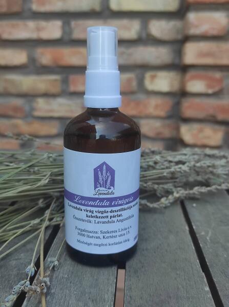 Levendulaszirmokból készülő illóolaj előállításakor keletkezett 100%-os, tiszta, természetes levendulavíz. Alkalmazása: -ápolja, nyugtatja, hűsíti a bőrt -pattanásos, zsíros bőrre ajánlott -napégésre, csípésekre kiváló ápolószer -textil illatosító -Natúr kozmetikumok alapja Használat: Permetezd a kívánt bőrfelületre, vagy virágvízzel átitatott vattakorong seg