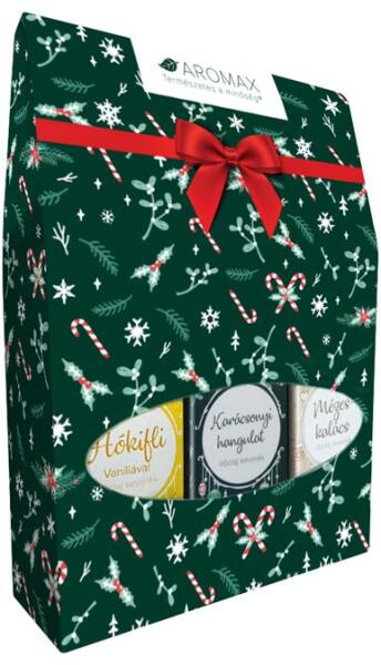 A dísztasak tartalma: Karácsonyi hangulat illóolaj keverék (10ml) Mézeskalács illóolaj keverék (10ml) Hókifli illóolaj keverék vaníliával (10ml)