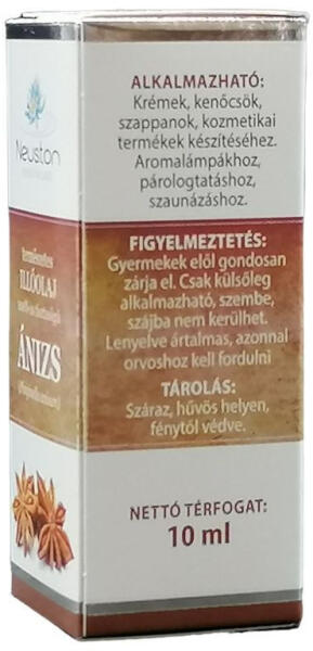 Alkalmazásának főbb területei a légzőszervi- és szájüregi megbetegedések, emésztőszervi panaszok, nőgyógyászati problémák. 10 ml-es illóolaj; Neuston termék aromaterápiához.