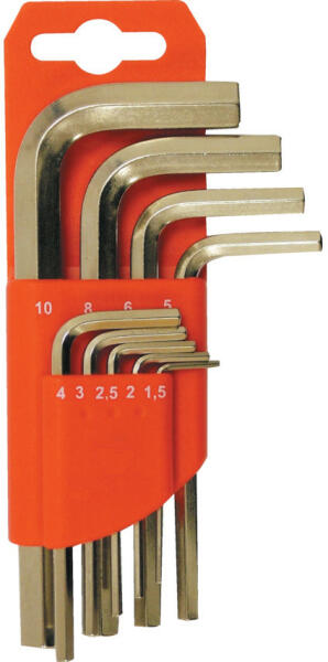 9 darabos hatszögkulcs-készlet HEX munkaponttal. A kulcsok krómötvözött acélból készültek, amely nagyon erős és korrózióálló. A kulcsok kényelmes és tartós fogantyúhoz vannak rögzítve a gyors hozzáférés érdekében. Ezenkívül a forgásponton egy fogantyú található, amely megkönnyíti a munkát a kulcsokkal. Jellemzők:Krómacélból készült-CrV munkafej típusa HEX