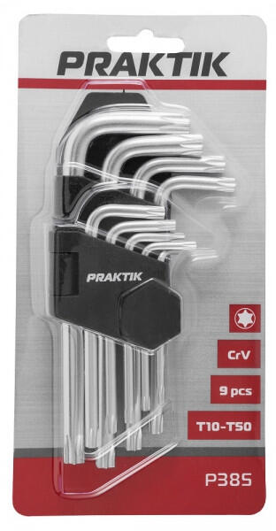 Készlet tartalma : 9 darab Torx kulcs T10-től T50-es méretig. Anyag : Tartós, króm-vanádium acél, amely biztosítja a hosszú élettartamot. Felhasználási terület : Kifejezetten Torx csavarok meghúzására és lazítására. Kialakítás : Kompakt és praktikus, könnyen hordozható. Ez a készlet ideális választás precíziós szerelési feladatokhoz.