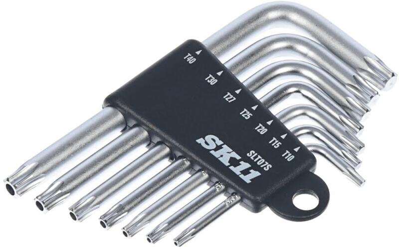 A SK11 7 darabos L-alakú torx kulcs készlet egy sokoldalú L-alakú kulcskészlet, amelyet kifejezetten Torx csavarokhoz terveztek. A készlet meghosszabbított üreges véggel is rendelkezik, hogy a szabotázsbiztos Torx csavarokat is kezelni tudja. A készlet speciális ötvözött acélból készült, hogy maximális csavarási szilárdságot, tartósságot és kopásállóságot biztosítson