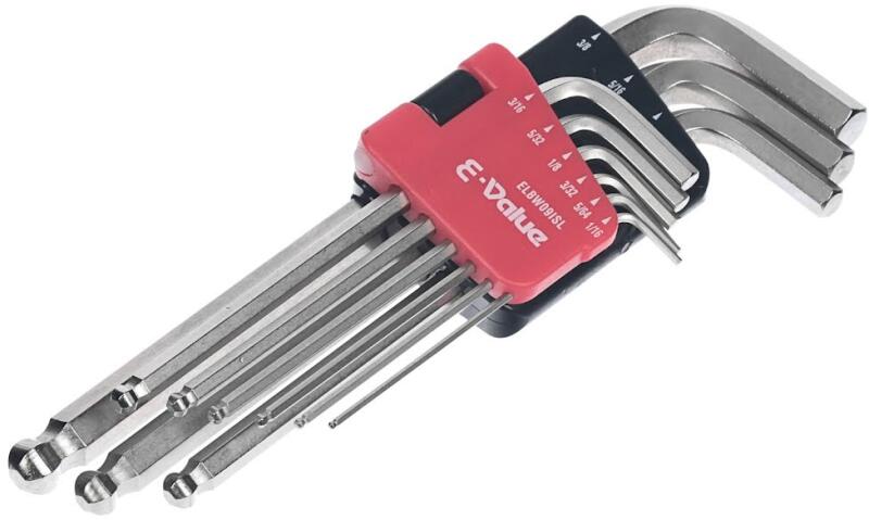 Az E-VALUE 9 darabos gömbvégű imbuszkulcs készlet közepesen hosszú kialakítással hatékony és hozzáférhető megoldást kínál az imbuszcsavarok meghúzására és lazítására. A készlet gömbvégű kialakítású kulcsokat tartalmaz, amelyek akár a 25 fokos szögben való használatot is lehetővé teszi, így szűk vagy akadályozott területeken is használhatók. A közepesen ho