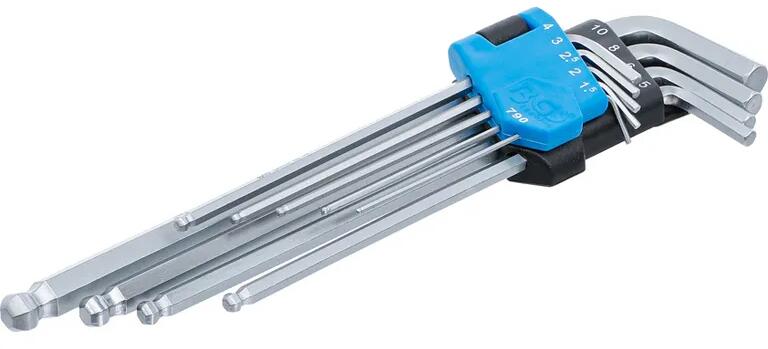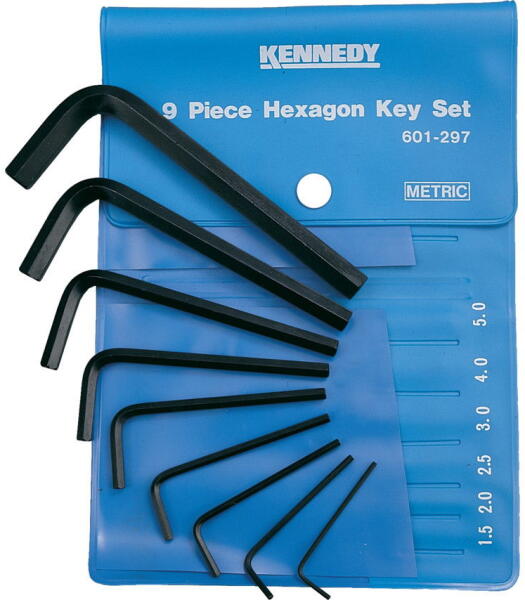 Metrikus, 9 darabos készlet, normál hossz Tartalma 1.5, 2, 2.5, 3, 4, 5, 6, 8 és 10 mm-es es hatszögkulcsok.