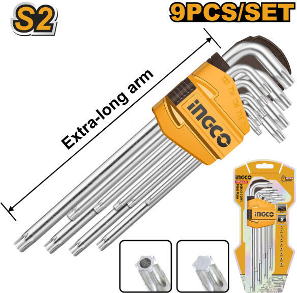 Anyaga: S2Méretek: T-10, T-15, T-20, T-25, T-27, T-30, T-40, , T-45, T-50. Extra-Hosszú szárHőkezelt és krómozott Szállítási terjedelem: 9 db Torxkulcs, Bliszterben