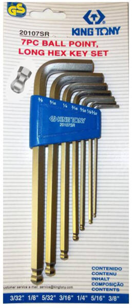 King Tony gömbvégű, hosszú imbuszkulcs készlet 7 dbA King Tony vállalat 1976-os Taiwani megalapítása óta törekszik a magas minőségre, a vevői elégedettségre és a munkakörülmények kellemessé tételére. Ipari minőségű termékeire világszerte nagy a kereslet. Kínálatukban megtalálunk kézi szerszámokat, elektromos készülékeket, mérőműszereket és tartozékokat egyar
