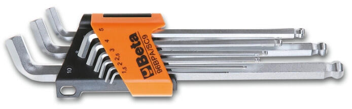 A KÉP CSAK ILLUSZTRÁCIÓ! JELLEMZŐK: Imbusz-csavarhúzó 9 darabos 110°-ban hajlított gömbfejű hatlapú imbuszkulcs-készlet, extra rövid 96BPA/SC9 1,5-2-2,5-3-4-5-6-8-10 mm TECHNIKAI SPECIFIKÁCIÓK: