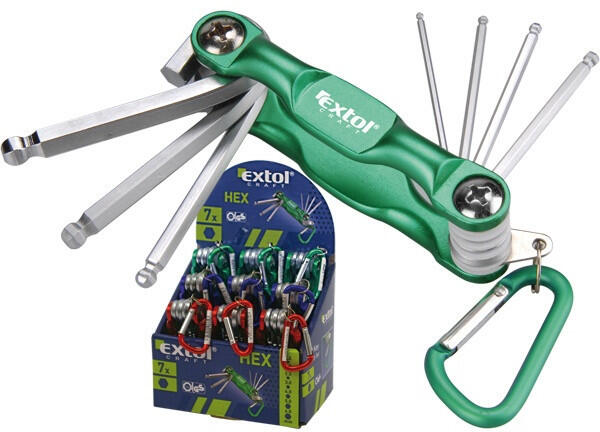 imbuszkulcs klt. , Cr40 gömbfej, színes, TÜV/GS; 7db, 1,5-6mm, karabínerrel, 9 darabonként kínálódobozban Figyelem! A kínálódoboz változása miatt - 6 db helyett immár 9 db klt. van benne - megváltoztak (vásárlóink számára előnyösen, vagyis csökkentek) a mennyiségi kedvezmény rendelési egységei a katalógusban közöltekhez képest! M2: 12 db helyett 9 db, M3: 36 db helye