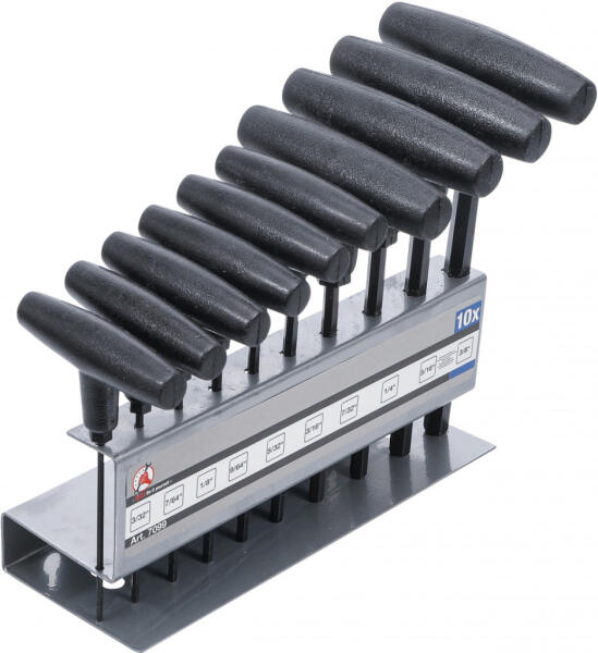 T-Fogantyú Állványban Szállítási Terjedelem: Csavarh zó T-Fogantyúval, Belső Hatszögletű 3/32" Csavarhúzó T-Fogantyúval, Belső Hatszögletű 7/64" Csavarhúzó T-Fogantyúval, Belső Hatszögletű 1/8" Csavarhúzó T-Fogantyúval, Belső Hatszögletű 9/64" Csavarhúzó T-Fogantyúval, Belső Hatszögletű 5/32" Csavarhúzó T-Fogantyúval, Belső Hatszögletű 3/16" Csavarhúzó T-