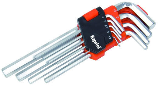 A KÉP CSAK ILLUSZTRÁCIÓ! JELLEMZŐK: Gömbfejű hajlított imbuszkulcskészlet, krómozott színezett A gömbfejnek köszönhetően a csavar tengelyéhez képest 30°-ban is dolgozhatunk Csavar meghúzásához lehetőleg a rövid véget használjuk. A színek gyors méretazonosítást tesznek lehetővé. TECHNIKAI SPECIFIKÁCIÓK: mm5 L mm163 L1 mm33