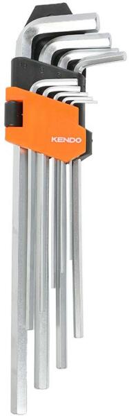 Króm-vanádium acélból készült, 9 részes KENDO extra hosszú imbuszkulcs készlet Edzett szár a maximális erő és tartósság érdekében A kompakt tartó elősegíti a kulcsok könnyű eltávolítását Méret jelölés a tárolón Könnyű vele dolgozni a nehezen hozzáférhető helyeken is