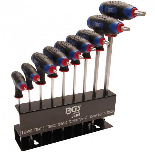 T10x100 mm T15x115 mm T20x120 mm T25x130 mm T27x140 mm T30x150 mm T40x160 mm T45x175 mm T50x200 mm két oldalon használható rövid és hosszú szárral ergonómikus nyéllel fém tartóval és rögzítő furatokkal