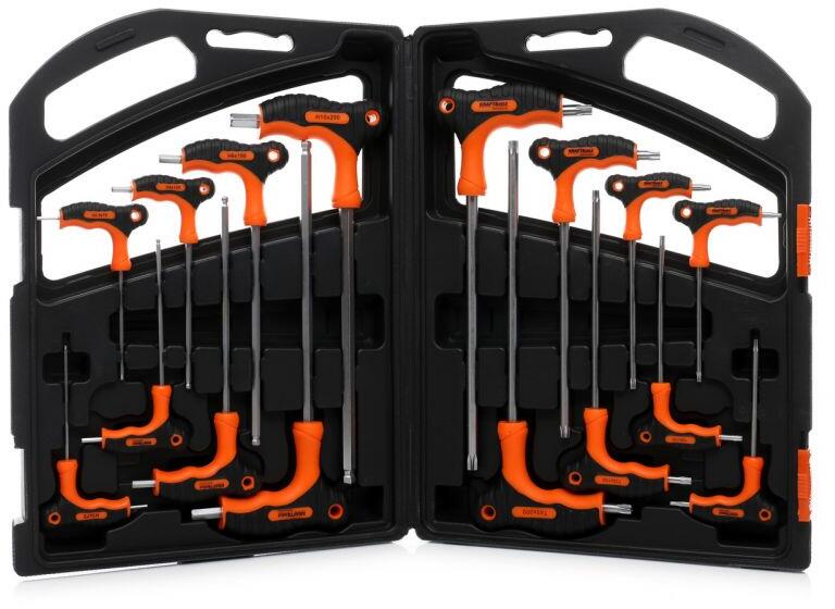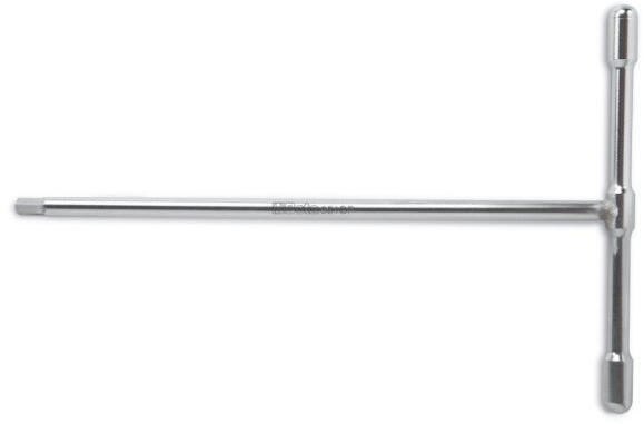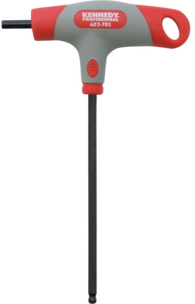 Edzett karbonacél kettős anyagú T-markolattal a nagyobb kényelem és erő érdekében. A gömbvégű hatszögkulcs max. 30°-os szögelfordulást tesz lehetővé. A rövidebb hatszög véget akkor használjuk, ha nagyobb szorítónyomaték szükséges. A hosszú hatszög gömbvégű míg a rövid hatszög egyenes. Feketeoxidált felület. Gyártva az ISO2936/DIN911 szabványok előírásai sze