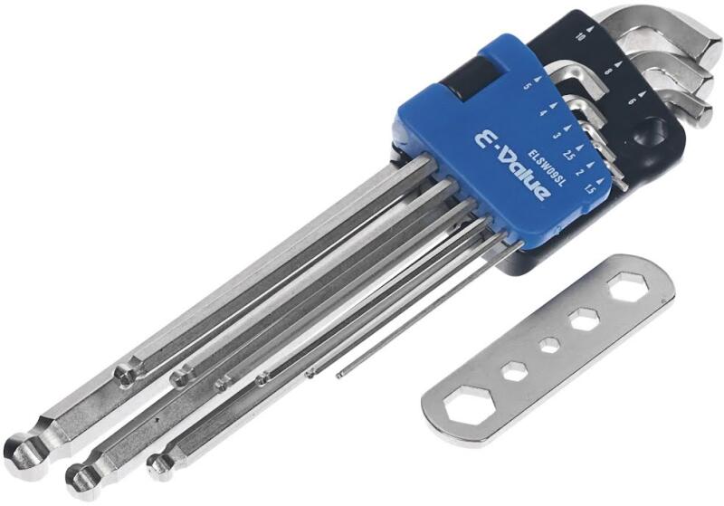 Az E-VALUE 9 darabos rövidfejű gömbvégű imbuszkulcs készletet kiváló manőverezhetőségre és hatékonyságra tervezték imbuszcsavarok meghúzására és lazítására. A gömbvégű forma lehetővé teszi a csavarok szögben történő könnyű elérését, így tökéletes szűk helyeken történő munkavégzéshez. A készlet az alábbi méreteket tartalmazza: 1,5, 2, 2,5, 3, 4, 5, 6,