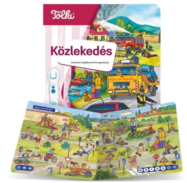 Mit kell tudni a játékról? Tolki Hangos könyv toll nélkül - Közlekedés Járművekkel és közlekedési szabályokkal foglalkozó interaktív ismeretterjesztő könyv, melyben a hanganyaghoz több mint 2000 szöveget, kvízkérdést és egyéb hangot hallhat a gyermek. Minden oldalon kvízjátékokkal tehetik próbára tudásukat. A könyv részletesen bemutatja a különböző közlekedés