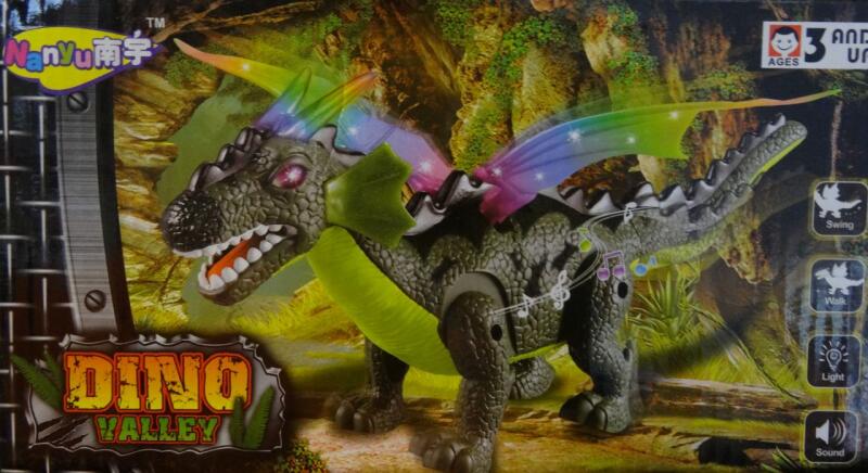 Elemes Valley Dínó mozog, világít No. Ny006-B - Gyerek játék Tegyél elemet a dínódba és megelevenedik Mozgáson kívül szépen világít és hangot is adLenyűgözi a kicsiket - Lépeget- Világít, zenél- Mozgó farokrész- 3db AA elemmel (nem tartozék)- Mérete 36 cm- 3 éves kortól