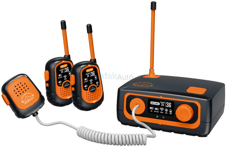 A kémjáték még szórakoztatóbb lesz az állomással ellátott nagyszerű Walkie-talkie-val. Egyetlen bűnöző sem szökik meg többé, a kis kémek ezekkel a szuper eszközökkel folyamatosan a bűnözők nyomában lehetnek. Az állomáson hangerőszabályzó található. Az állomás mikrofonja gyűrűs kábellel van összekötve. Az állomás és a 2 adóvevő 9V-os elemmel működnek, ame