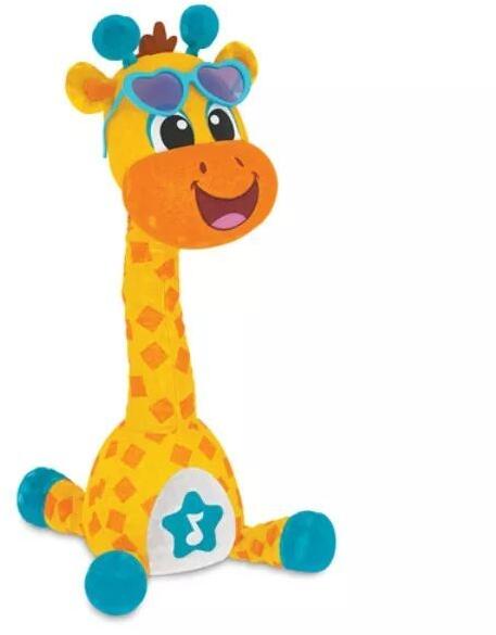 Vidám dallamok, vidám játék!Zsiráf Paul imád táncolni, és mindig jókedvre deríti a gyerekeket, sőt, még ösztönzi is a piciket a mozgásra. Zsiráf Paul 12 különböző dallamot tud lejátszani, ha megnyomják a nagy, villogó, csillag alakú gombot a pocakján. Szív alakú szemüvege felhajtható, így még mókásabb lesz a játék. Stabilan áll, nem borul fel, plüss anyaga kön