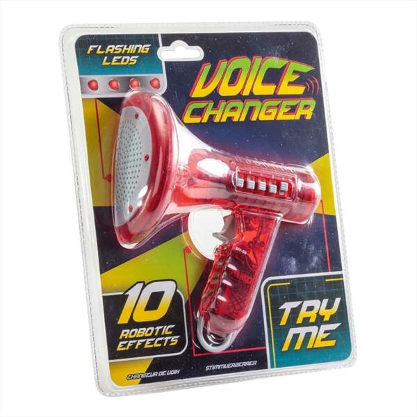 Ez a hangváltoztató eszköz érdekes módon változtatja a hangot. Az oldalán lévő gombok segítségével tudsz 10 féle hangot beállítani, ami lehet torzítani, fogja a hangod vagy lehet egy menő szörny hangot fogsz életre kelteni vele. A játék 9 V-os elemmel működik, ami tartalmaz a játék.