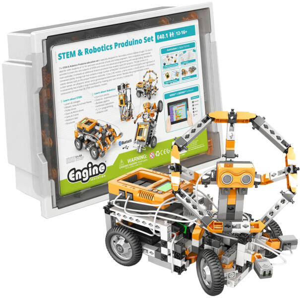 Tanítsa meg a gyerekeket a robotok programozására már az alapoktól kezdve az Engino Produino Robotics készlettel. Mindent tartalmaz, amire szüksége van ahhoz, hogy még ma elkezdhesse az oktatást: alkatrészeket, strukturált óraterveket, szórakoztató tevékenységeket, szoftvert és egy 3D-s építőalkalmazást is, amellyel a gyerekek virtuális térben tesztelhetik megépített robo