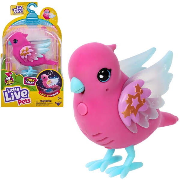 Mindenki bájos madárkája ezúttal rózsaszín ben érkezik a Little Live Pets Skyler, az interaktív énekes papagáj játékcsomagjában, így akárcsak (külön kapható) kék társa, most ő is varázslatos kalandra hívhatja kis tulajdonosait már 5 éves kortól . Simogatásért és szeretgetésért cserébe csiripel, fütyül, dalol. Minél több szeretetet kap, annál hosszabban teszi ez