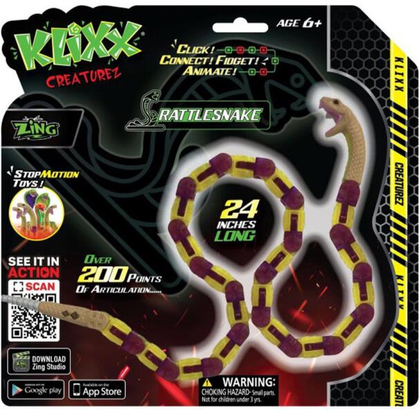 Klixx Creaturez: Csörgőkígyó többféle változatban Hivatalos magyarországi forgalmazótól. Leírás: Ez az építhető csörgőkígyót úgy alakíthatod ahogy akarod, hiszen, több mint 200 mozgatható ponttal rendelkezik, lehetővé téve a gyerekek számára, hogy különféle pózokba állítsák és élethű mozdulatokat adjanak neki. A Klixx Creaturez csörgőkígyó kiváló eszköz