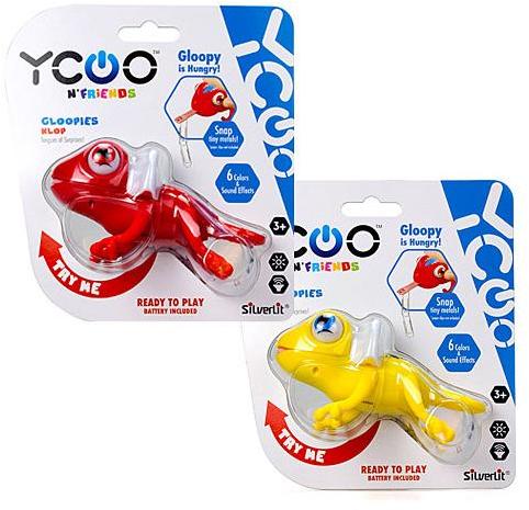 A Gloopies állatkák különleges lények. A fejüket megnyomva mágneses nyelvük lecsap a kihelyezett csalikra. Miközben vadásznak, vidám hangokat adnak ki és több színben világítanak. Több Gloopies-zal verseny is rendezhető: ki szedi össze előbb a kihelyezett fémtárgyakat, vagy ki szedi össze a többet... Az állatka 6-féle hangot ad ki és 6 színben világít. A játék műk
