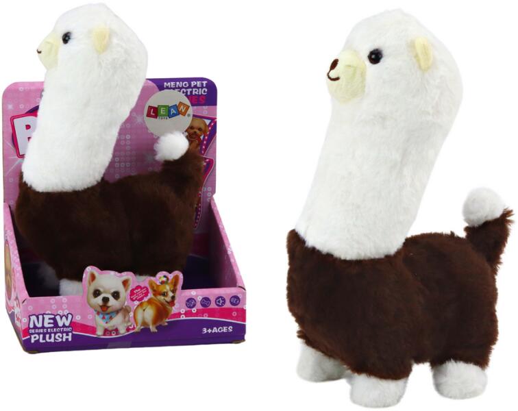 Interaktív futójáték Pet Llama Alpaca Brown 23cm Ez az interaktív láma nem csak egy hétköznapi játék, hanem igazi örömforrás és szórakozás minden gyermek számára. A fehér és sötétbarna árnyalatú bundájuk olyan puha és kellemes tapintású, hogy ha a kezedben tartod, azonnal melegség és kényelem érzése lesz. Ha bekapcsolja ezt az imádnivaló játékot, egy varázslat