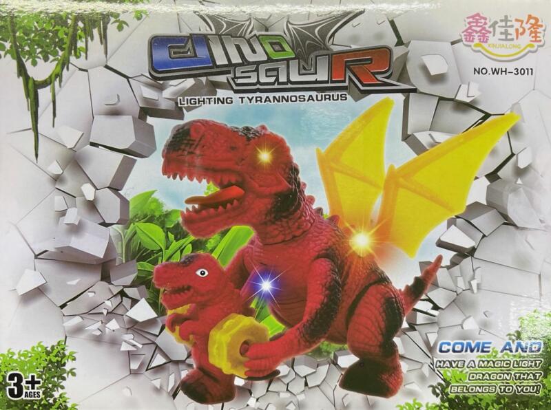 Elemes Tyrannosaurusl Dínó kölyökkel mozog, világít No. WH-3011 - Gyerek játék Tegyél elemet a dínódba és megelevenedik Mozgáson kívül szépen világít és hangot is adLenyűgözi a kicsiket - Lépeget- Fény, hangeffektusok- 3db AA elemmel (nem tartozék)- Mérete Kb. 20-25 cm- 3 éves kortól- Színek Zöld, barna