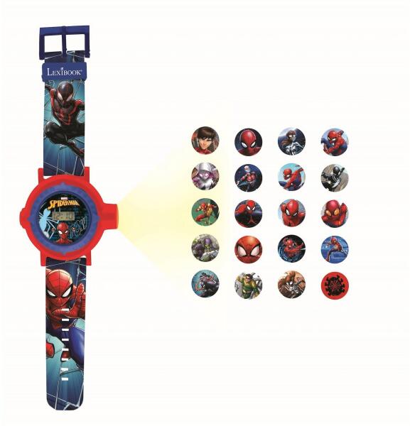 Lexibook Pókember projektoros karórával most 20 képet tudtok kivetíteni kedvenc karaktereitekről. Az óra állítható mérete miatt kisebb csuklóra is könnyen feltehető. A képek változtatásához csak az órán lévő tekerőt kell elfordítanotok. Az szerkezet önmagában az időt és a dátumot is tudja jelezni. A játékot 3 éves kortól ajánljuk. A játék 5 db AG3/LR41 elemmel m
