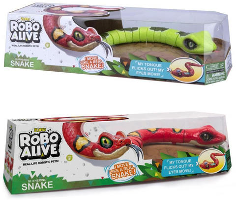 Gyártó: ZURU Modell: Robo Alive - Kígyó (FO-ROB25235) Leírás: Fedezd fel a kígyók életét ezzel az élethű robot állattal, aki pont úgy mozog és viselkedik, mint az igazi. A kígyó sziszeg és nyújtogatja a nyelvét. Siklik a földre le rakva, de ha a farkánál fogva emeled fel, akkor tovább mozog a teste, ha a fejénél érinted és emeled fel, akkor abbahagyja a mozgást. Műkö