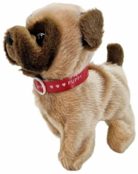 Egy plüss kutya minden állatbarátnak tetszeni fog. A kapcsoló BE állásba kapcsolása után a kutya magától sétál és ugat.