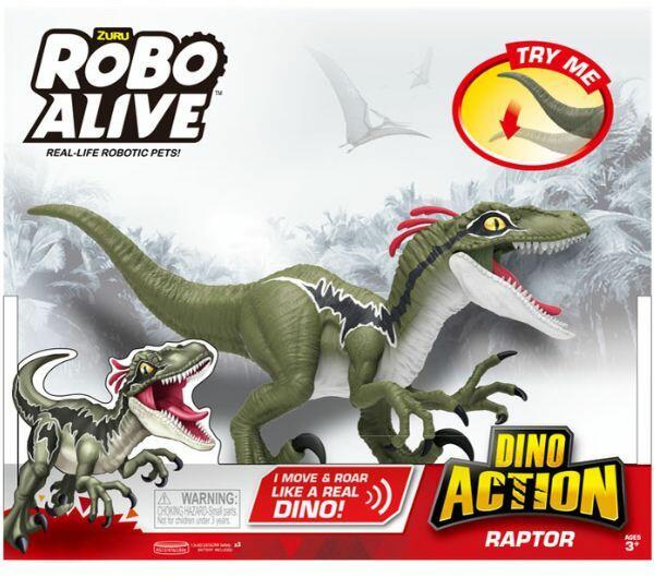 Interaktív Robodinó: Dino Akció Raptor Fedezd fel a ZURU Robo Alive sorozat legújabb tagját, a lenyűgöző és élethű Dino Akció Raptort! Ez a különleges játék garantáltan rabul ejti a gyerekeket és izgalmas kalandokra ösztönzi őket. Élénk és valósághű mozgások Amikor a raptor farka megérintésre kerül, azonnal élettel kel. Karjaival megragadja a "zsákmányát", miköz