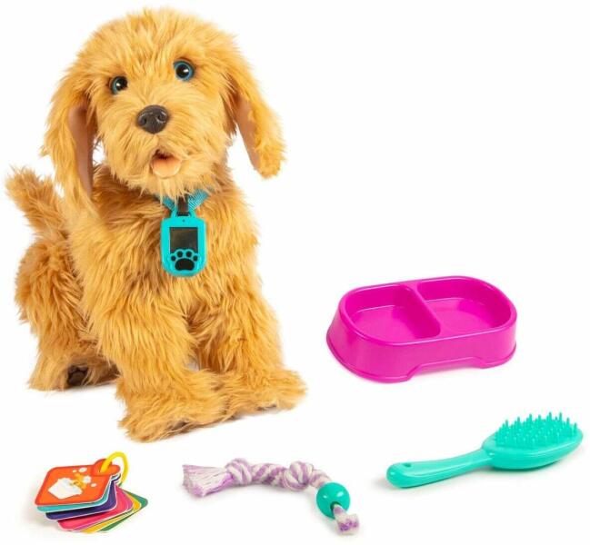 Moji interaktív Labradoodle kutya My Fuzzy Friends imádnivaló labradoodle kutyus Moji egy édes labrador kölyök kutya, igazi kis kedvenc lesz a családban. Nemcsak tündéri pofija miatt, hanem mert úgy is viselkedik mint egy igazi kölyök kutyus. Moji interaktív plüss kölyök kutya tökéletes választás lesz minden kutya szerető kis gazdinak. A kis labrador több, mint 150 reakcióra