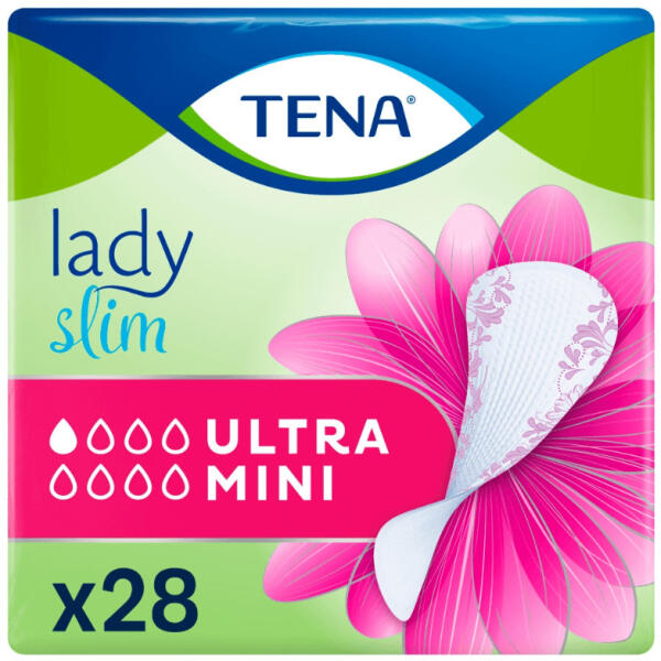 Ha Ön enyhe vizeletszivárgást vagy -csepegést tapasztal, válassza a Tena Lady Slim Ultra Mini vékony inkontinenciabetétet, amelynek szupervékony és szupererős a nedvszívó képessége - így megbízható és diszkrét védelmet jelent. A hagyományos tisztasági betétekkel azonos méretű, ám jóval erősebb nedvszívó képességgel rendelkezik: mindez a microPROTEXT technológiának
