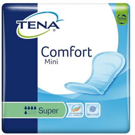 A TENA Comfort Mini termékeket a középsúlyos inkontinencia biztonságos ellátására fejlesztették ki. A szuper abszorbenssel megerősített dupla magjának, valamint oldalsó gumírozásának köszönhetően biztonsággal szívja fel és tartja meg a folyadékot, miközben ezzel egyidejűleg megakadályozza a kellemetlen szagokat okozó baktériumok szaporodását. A TENA Comfort Mini term