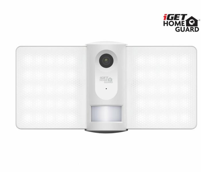 iGET HOMEGUARD Kültéri robusztus IP-kamera LED-világítással és online megfigyeléssel mobiltelefonon, táblagépen stb. keresztül. A kamera állítható intenzitású LED-világítással, max. 2100 lm, kétirányú hangátvitel - mikrofonnal és hangszóróval, éjjellátóval, szirénával rendelkezik, és közvetlenül csatlakoztatható 230 V-os váltóáramra. A felvételeket és fényk