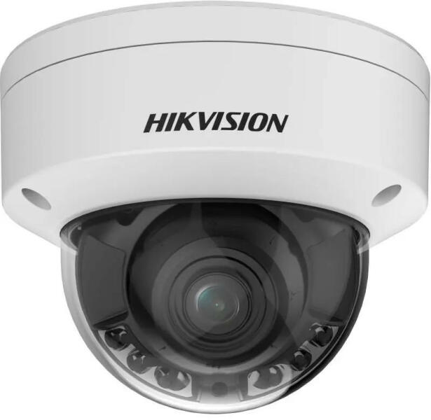 Hikvision Smart Hybrid Light IP kamera. 4 Mpx-es, kültéri, dome, 2,8 - 12 mm varifokális objektív, valós WDR, éjjel színes, VCA, objektumazonosítás, IK10, microSD, PoE